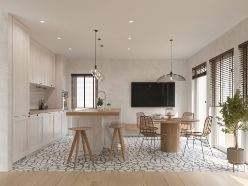En la planta baja, en el lado izquierdo de la casa mirando desde las ventanas del comedor, una puerta de entrada antirrobo de 90 cm de ancho da acceso a un pasillo de 10.2 m², que funciona como recibidor y ofrece un espacio acogedor para recibir a tus invitados. Desde aquí, se conecta el salón-comedor de 25.4 m² con la cocina de 8.6 m², adaptable según tus necesidades como dormitorio o despacho si se integra con el comedor. Además, encontrarás un baño de 6.8 m² y una escalera interior que lleva al piso superior.